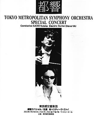 そんなことはどうでもいいのだ。筆者は単にスティーブ・ヴァイの実物を見たかったのである。場所は溜池のサントリーホール。一曲目はヴァイを入れずに都響だけでバーンスタイン作曲のキャンディード。それが終わって暫くしてピンク系のアロハ姿の痩せて背の高い、やたらと足の長いスティーブ・ヴァイが出てきた。そしていつものIbanezを構えて都響との共演=競演が始まった。