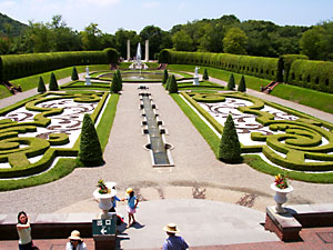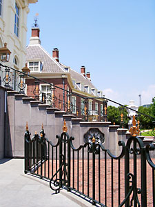 疑問を抱きながらそこを抜け、場内バスに乗る。何故か有料。パスポートは何のためにあるんだ?とにかく、そのままバスでハウステンボスの一番奥にある「パレス・ハウステンボス」まで行き中を見学。「幻のバロック式庭園」(なんで幻かと言えば、歴史上のオリジナルは計画だけだったから)は立派だが、パレスの方はとっても中途半端。見学するためにはやたらと階段の上り下りが多い。以降、ハウステンボス内の全ての施設はやたらと階段の上り下りが多いことが判明。まったくバリア・フリーではないし、中年以上は健常者でも辛い。これは明らかに設計上のミスである。 |