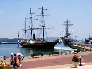 | 「パレス・ハウステンボス」の後は海沿いに歩く。途中の施設内のホテルのレストランでランチ・メニューのスパゲッティを食べたが観光地料金としても高すぎる。但し味はまあまあ。レストランの前はハーバーで、観光遊覧船が停泊中。長崎までのフェリーもあるらしい。場内は8月の日曜日だというのに、どっちかというとガラガラの様子。どんなアトラクションも並ばずにすぐに見ることができる。 |