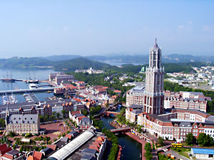 ハウステンボスの敷地の中央にあるドムトールンと言う名称の尖塔に登ってみる。高さは80m。エレベーターで最上階についてびっくり&がっかり。展望室がやたらめたらと狭いのだ。しかも窓は240度ぐらいにしか無い。つまり360度全周を見渡せないのである。なんなんだ、これは。