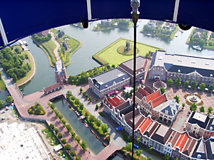 そこで施設内からいつも見えるバルーンに乗ろうと思ったら営業時間は16時まで。をいをい。仕方がないから翌朝になって乗ったのだが、しっかりと別料金。見晴らしは良かったが、120mと言うことはお台場の大観覧車より低いのかも知れない。とにかくハウステンボスのアトラクションはどれもこれも中途半端以下である。 |
