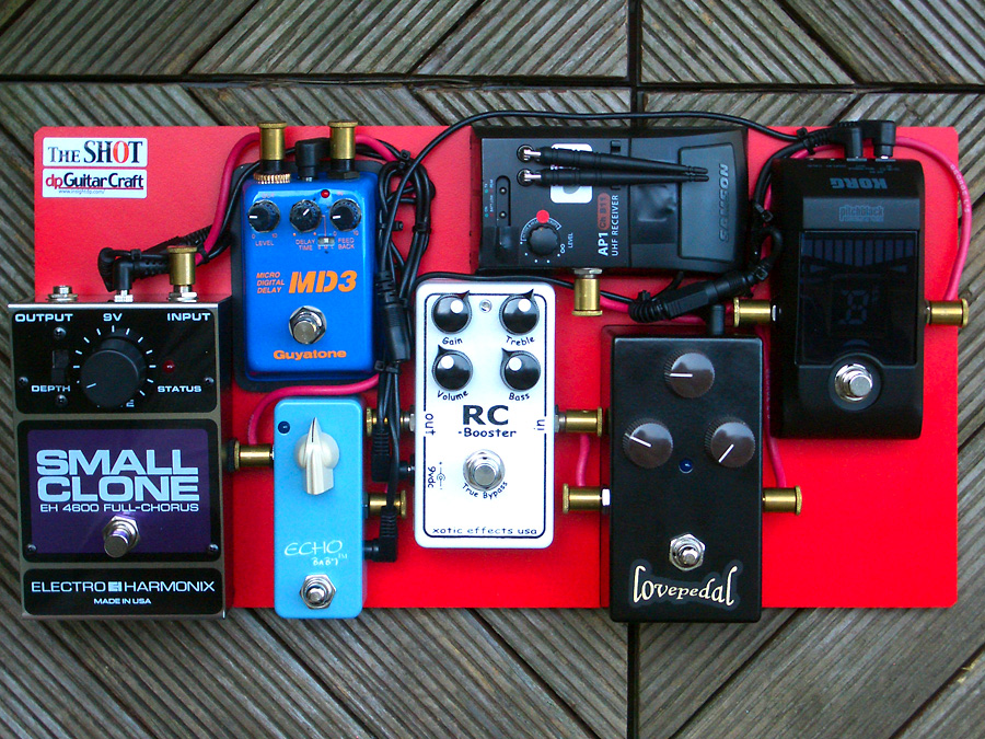 - 結果、踏みやすいのは(写真の左から)Electro Harmonix Small Clone、Lovepedal Echo Baby、Lovepedal ETERNITYの三つだけ