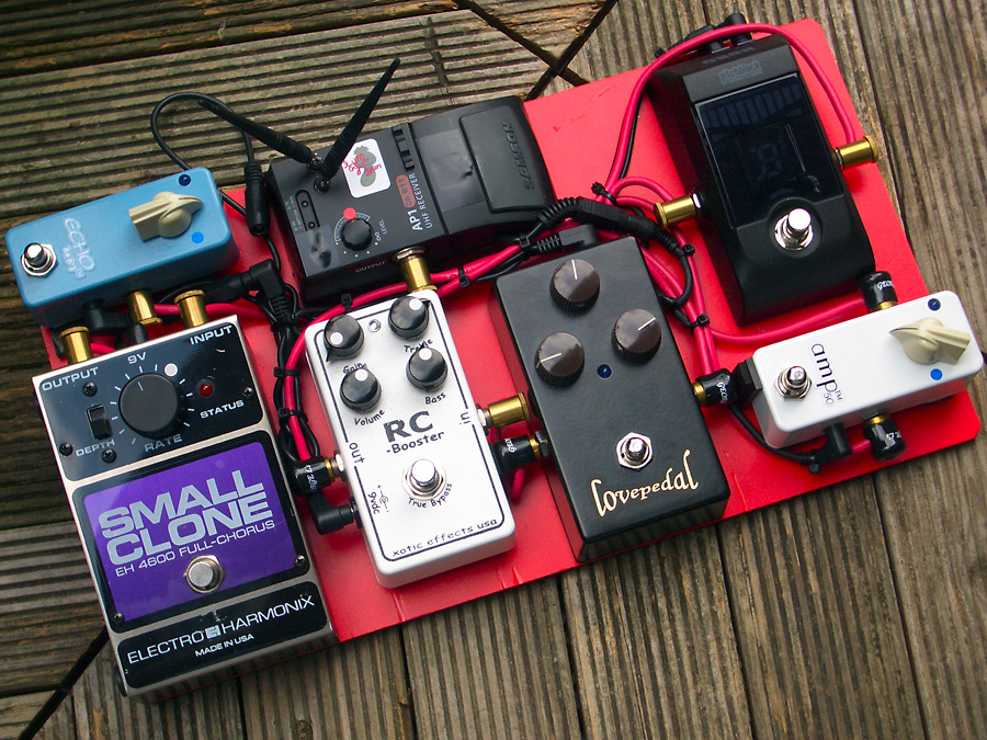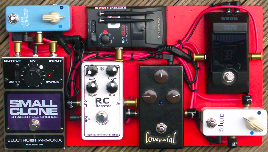 クランチ系のソロ用。Xotic RC-Boosterはミッド・ブーストにセッティング