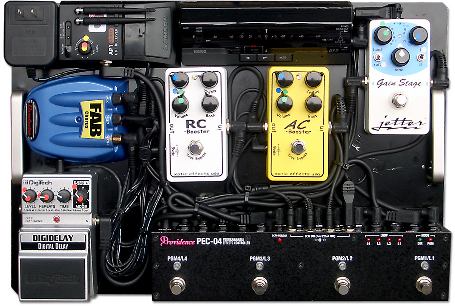 使用頻度は低いが、クリーン/クランチ系のリードを取る必要のある曲では予めXotic AC-BoosterをOFFにしておいてXotic RC-Boosterでミッドブーストすればよい