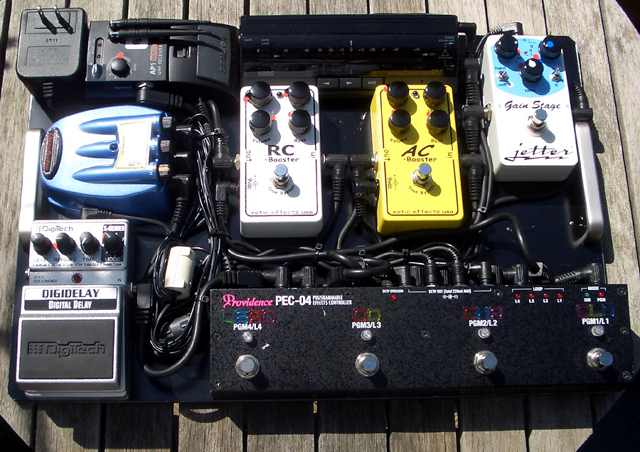 使用頻度は低いが、クリーン/クランチ系のトーンで音圧を上げたクランチ系のリードを取る必要のある曲では予めXotic AC-BoosterをOFFにしておいてXotic RC-BoosterだけがONになるようにすれば良い(が、そう言う曲はうちのバンドでは滅多にない)