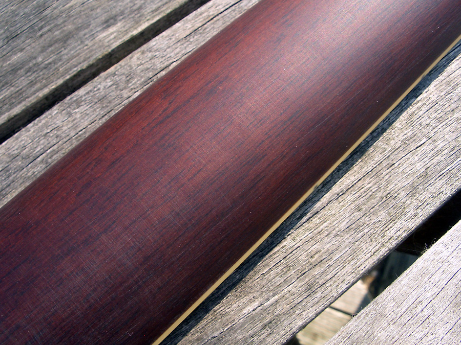 さて。では実際の弾き心地はどうかと言えば、これはもう従来のポリウレタン塗装の時とは雲泥の差である。一番、判りやすいのは裏返し=ボディ・バックが手前=に立て掛けてあるPeavey HP EXP君をネックを持って持ち上げようとするときである。今まではポリウレタン塗装が手のひらにくっつくような感触で「すっと」持ち上がるが、サテン・フィニッシュをした後では、しっかり持たないとネックが滑って持ち上がらないのだ。