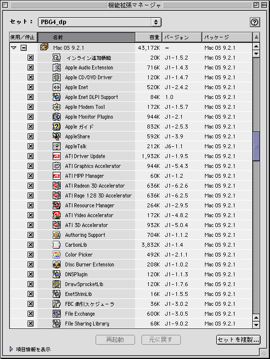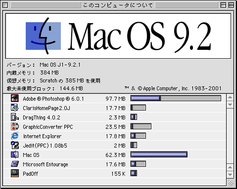 逆に言えば、その点を除けば、Mac OS 9.2.1とMac OS 9.1の差異は少ないようだ。細かいバグフィックスなどの関係からシステムフォルダーの中身(コントロールパネル書類、機能拡張書類など)は殆どがバージョンアップされているが、新しい機能が増えたようなことはない。と言うことは、既にMac OS 9.1を使っている場合はMac OSの安定度が向上することは間違いないのだから、対象機種の場合はさっさとアップデートすべきだと言うことになる。当たり前だが、ちゃんとしたソフトであれば、今までMac OS 9.1で動いていたものであれば、全てMac OS 9.2.1上で問題なく動作する。