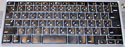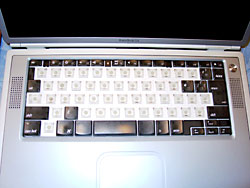 とにかくすべての点で気に入っているPowerBook G4だが、キートップのかな表記だけは許せないのである。 |