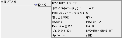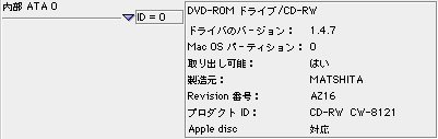 | てなわけで、以上のとっても時間と手間の掛かる回り道を経て、とにもかくにも、我がPowerBook G4には無事、TAXAN PBG4COMBが組み込まれた。下図は「Appleシステム・プロフィール」で接続を確認したところ。 |