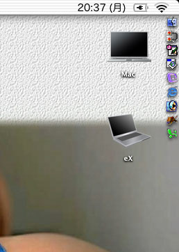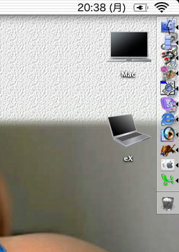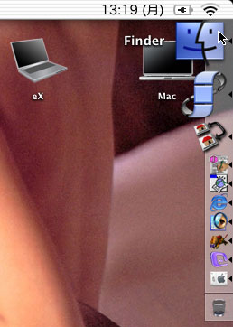 そこで右上のDragThingのプロセスドックと重なる位置に置いてみた。Mac OS XのDockとDragThingのプロセスドックは本質的に同じ機能なのであえて場所までバッティングさせればやること(させること)は同じだからかえって邪魔にならないのではないかという逆転の発想である。 |
