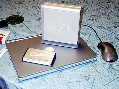 - PowerBook G4に20GBと30GBの外付けFireWire-HardDiskをディジーチェーン接続(上の写真)